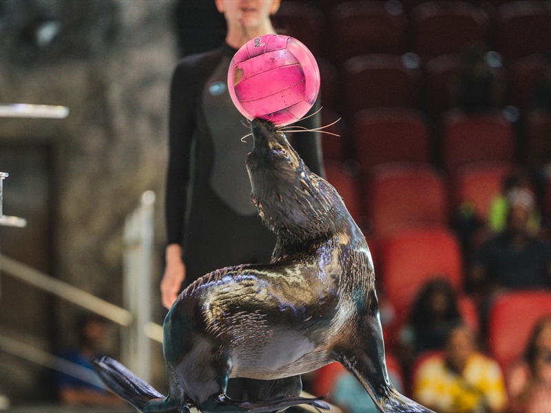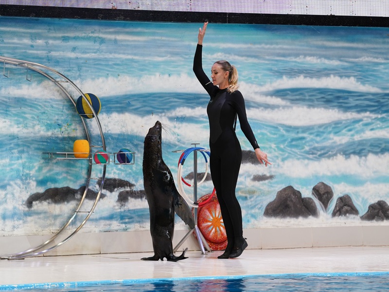 Delight in a heartwarming performance by dolphins and seals at Dubai Dolphinarium…